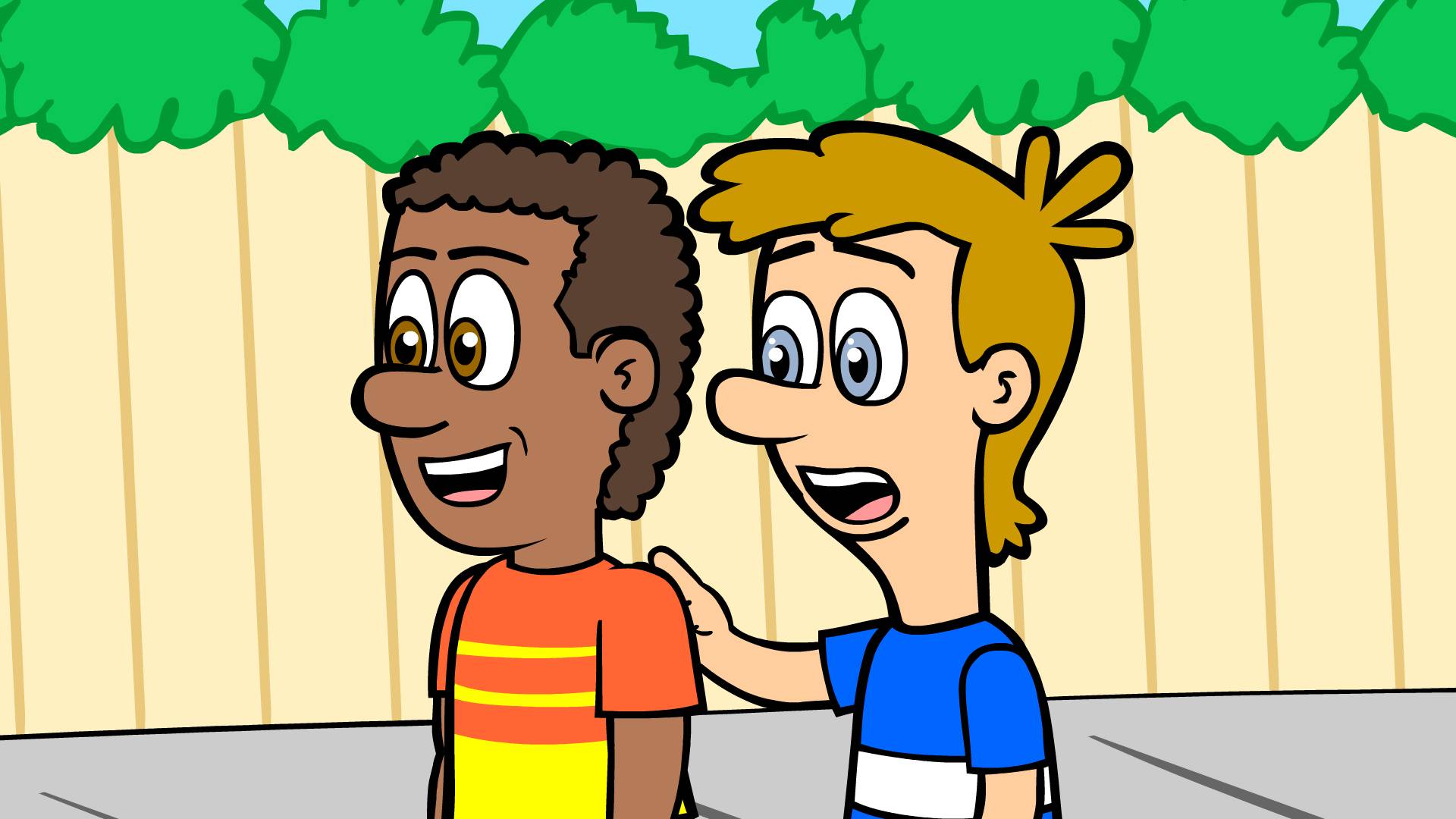 Gildo e o amigo Rafa observam uma linda menina que se mudou para o bairro e percebem que ela está se aproximando. Típica conversa de criança.
