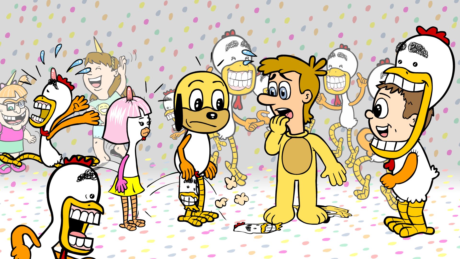 O Frango de Dentadura percebeu que o outro Frango de Dentadura era, na verdade, Gildo usando uma fantasia de Tobias fantasiado de Frango de Dentadura, mas quando foi comprar suco para os amigos teve outra surpresa.
