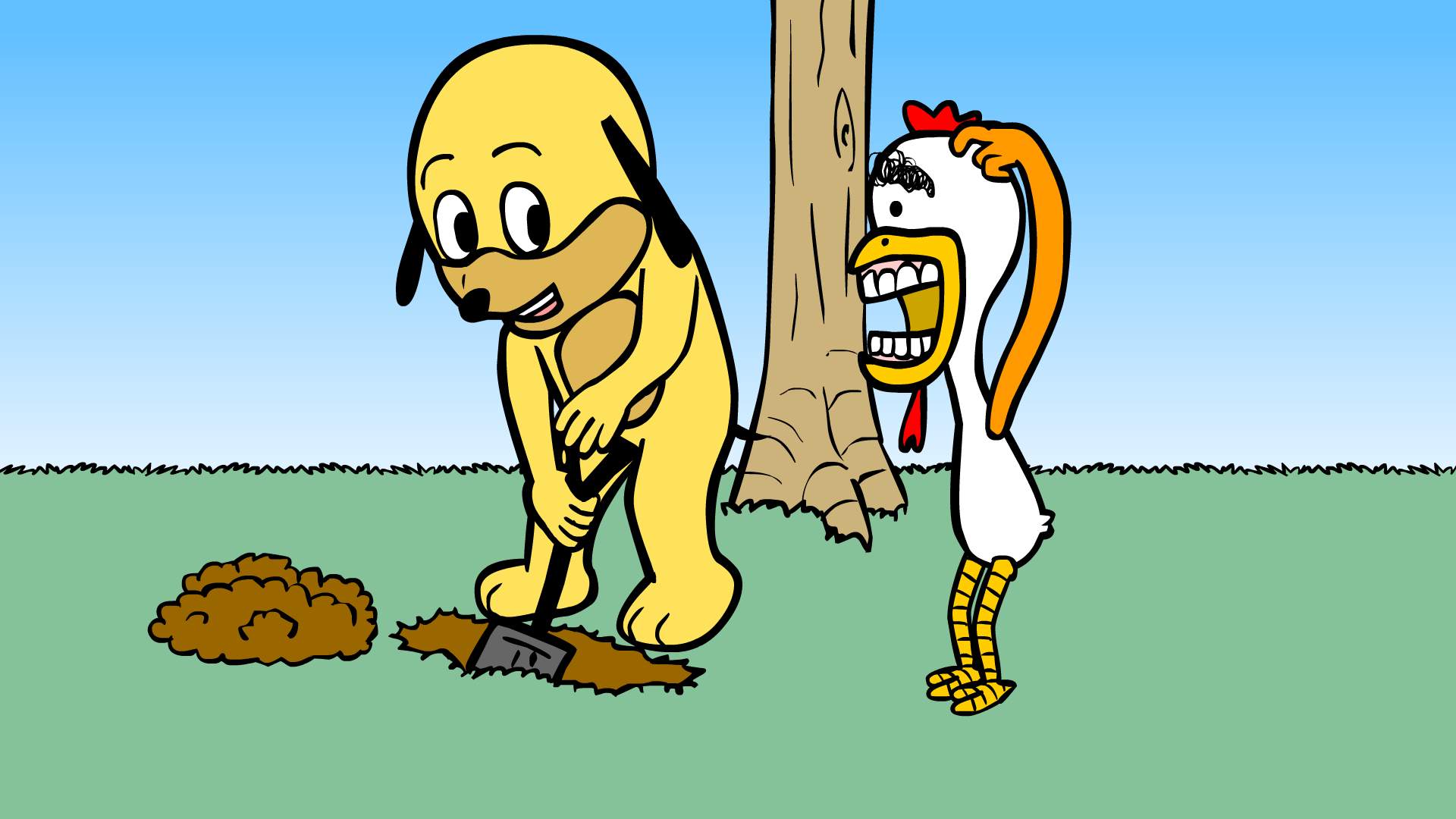 O psiquiatra Doutor Clóvis sugeriu que o cachorro Tobias enterrasse tudo o que fosse ruim em um buraco. Ao saber disso, o Frango de Dentadura não resiste e começa a atazanar o cãozinho. Ai, meu São Galináceo!