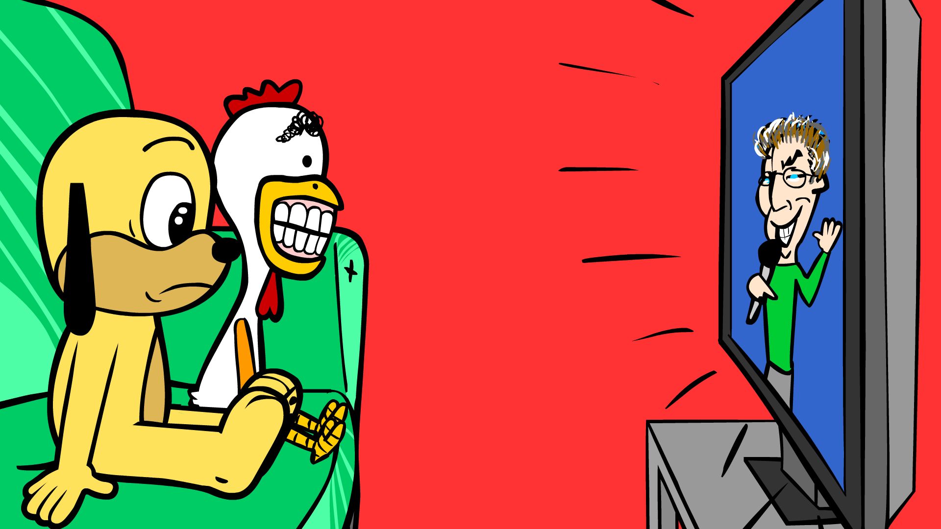 É noite de paredão no programa de TV Big Bobos Brasil, e um dos participantes será eliminado. Tobias e o Frango de Dentadura já fizeram suas escolhas!